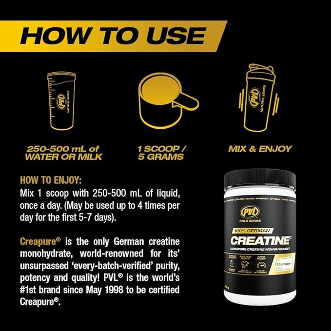 Creatine monohydrate is the most proven strength and muscle growth ingredient in the world - the undisputed king - and Creapure® is the purest form of it. Creapure® is the only German-made creatine monohydrate and is world-renowned for its unsurpassed 'every-batch-verified’ purity, potency, and quality. PVL GOLD SERIES 100% GERMAN CREATINE delivers the power and perfection of Creapure® to those who demand the best of the best. If you must have 1st class all the way, this is the ONLY creatine in that class.